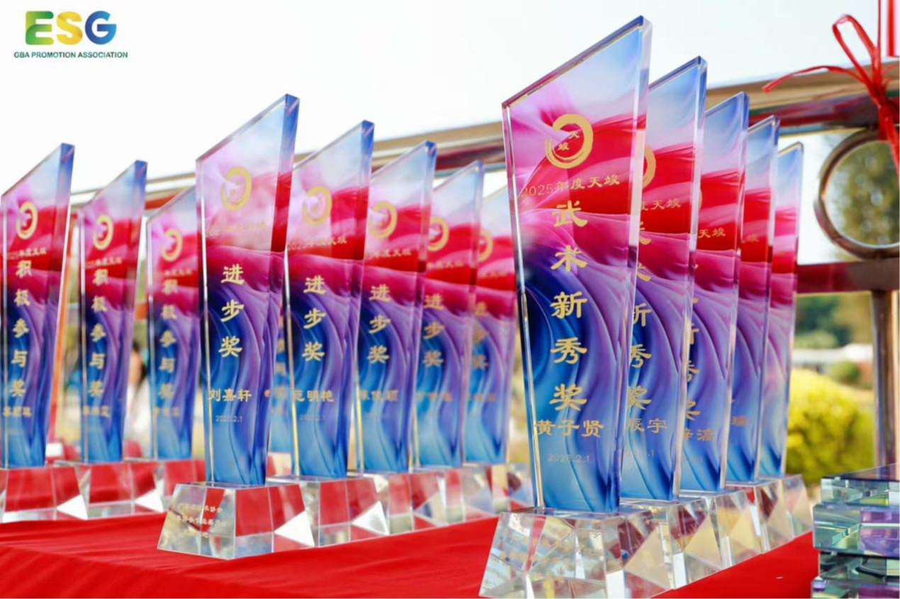 During the awards segment, representatives from the Association actively participated in presenting several important awards. The ceremony collectively honoured students who had achieved outstanding results in provincial and even international martial arts competitions in 2025, including the Guangdong-Hong Kong-Macao Greater Bay Area Wushu Elite Competition, the 2025 "Longhu Cup" Guangdong Nanquan and Taijiquan Elite Competition, and the 2025 World Traditional Wushu Championships selection trials. Gold, silver, and bronze medals for both team and individual events were awarded. Additionally, the ceremony specially established annual awards such as the Wushu Rising Star Award, Progress Award, Active Participation Award, Wushu Star, and Outstanding Student Award. By presenting awards to these high-achieving students, the ESG GBA Sustainable Growth Promotion Association contributed to promoting martial arts culture and fostering discipline, resilience, and a sense of responsibility among the youth.